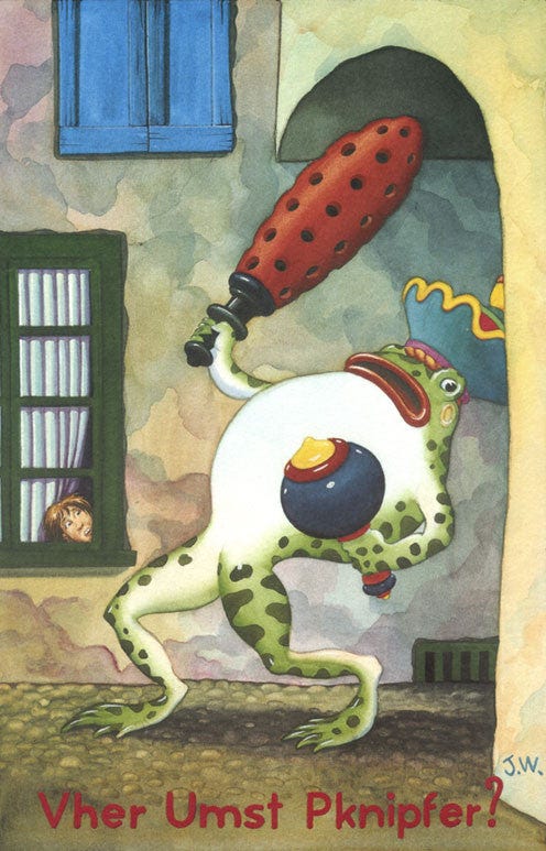 Woodring also ran a self-titled zine called JIM. As described on his own site, “Vher-Umst-Pknipfer” was one of the magazine’s most popular images: