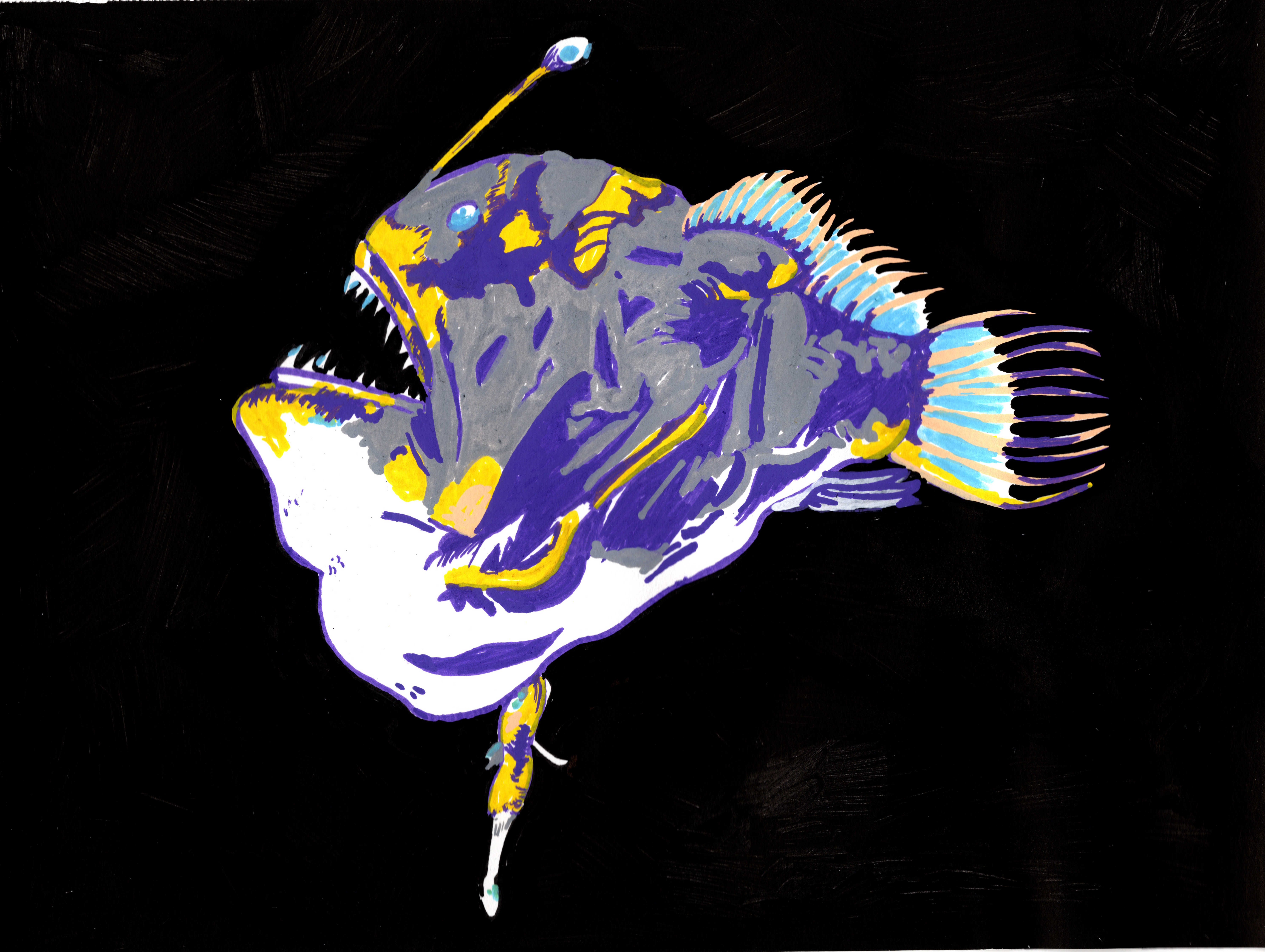 I painted the above anglerfish for him this week. I’ve seen him frightened before, but this animal brings him some sort of comfort for some reason.