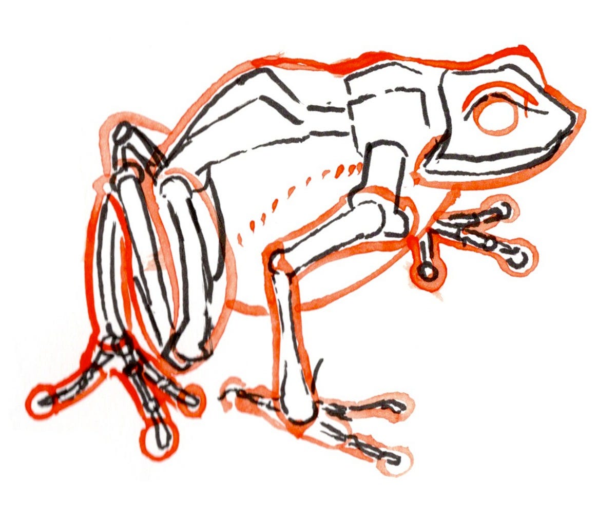 On the topic of mechs, I’m working on a design with frog-like legs, so I wanted to learn more about frog anatomy. Frogs are fun.